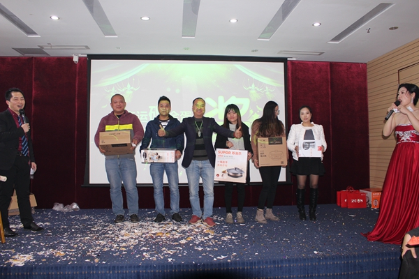 抽獎是每年固力士年會(huì )的重頭戲,今年年會(huì )抽獎形式為砸金蛋。為慶賀固力士今年喜獲豐收,公司為所有員工以及所有到場(chǎng)嘉賓準備了大量豐厚的獎品,其中包括價(jià)值5888元的國產(chǎn)華為手機和大量平板電腦以及數量較多的電子產(chǎn)品。